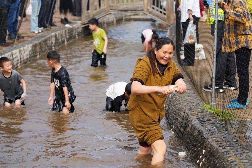 “乐在橘中”酷好酷好活动在橘花广场河对岸的草坪旷地上火热进行。凉亭棋牌角里,几位老东谈主正满足对弈;农趣体验区更是笑声抑遏——“乘虚而入”池中,孩子们卷起裤腿追赶鱼群;“欢喜套大鹅”现场,旅客们屏息凝想,套中者欢欣若狂;“草地捏鸡”技俩中,大东谈主小孩皆上阵,你追我赶,好不干扰。来自彭山城区的旅客李先生擦着汗笑谈,“没意象在农村还能这么玩,捏鸡摸鱼这些小时辰的记忆全记忆了,孩子也玩得不想走。”