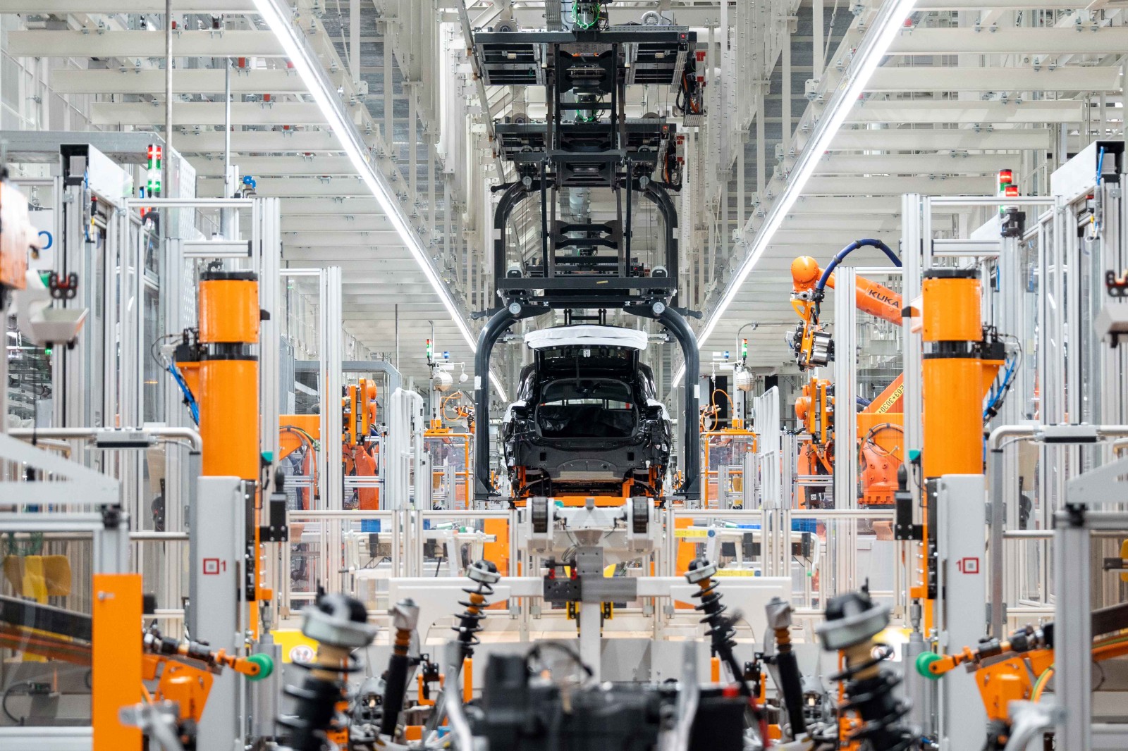 奥迪一汽新动力工场是奥迪和中国一汽相助格式,2022年年中开工成就,筹画产能15万辆,有冲压车间、焊装车间、涂装车间、总装车间和电板车间出产,约3000名职工。其中,焊装车间有超800台机器东说念主。