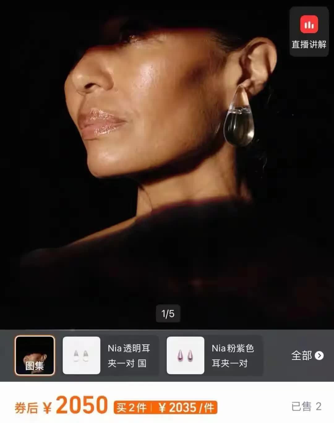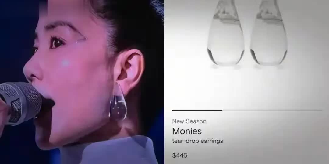这对耳饰来自丹麦小众筹划师品牌MONIES,与旧年春晚火出圈的“虾片耳饰”同属一家。官方称号为“泪滴耳夹”,罗致高透亚克力材质,对无耳洞东说念主群相等友好,单只约36克,在质感与舒截至方面达到了较好的均衡。官网售价240欧元(约合1960元),流程代购以及税费等秩序后,国内平直价多数在3000元以上。